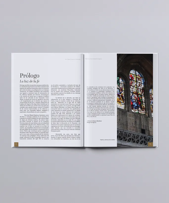 La Catedral de Segovia posee uno de los conjuntos de vidrieras manieristas más logrado de España. El pasaje bíblico de los Evangelios representado en cada vitral central de las naves, se ve apoyado en sus laterales por escenas del Antiguo Testamento. Vidriera a vidriera el lector podrá hacerse con el contenido de la representación, los datos básicos de autoría, año y emplazamiento en el templo, la fidelidad al plan iconográfico del siglo XVI conservado en un manuscrito del archivo catedralicio, el texto bíblico y un comentario espiritual, que le facilite la comprensión en torno a los misterios salvíficos de la vida de Jesús, ideal del hombre nuevo.